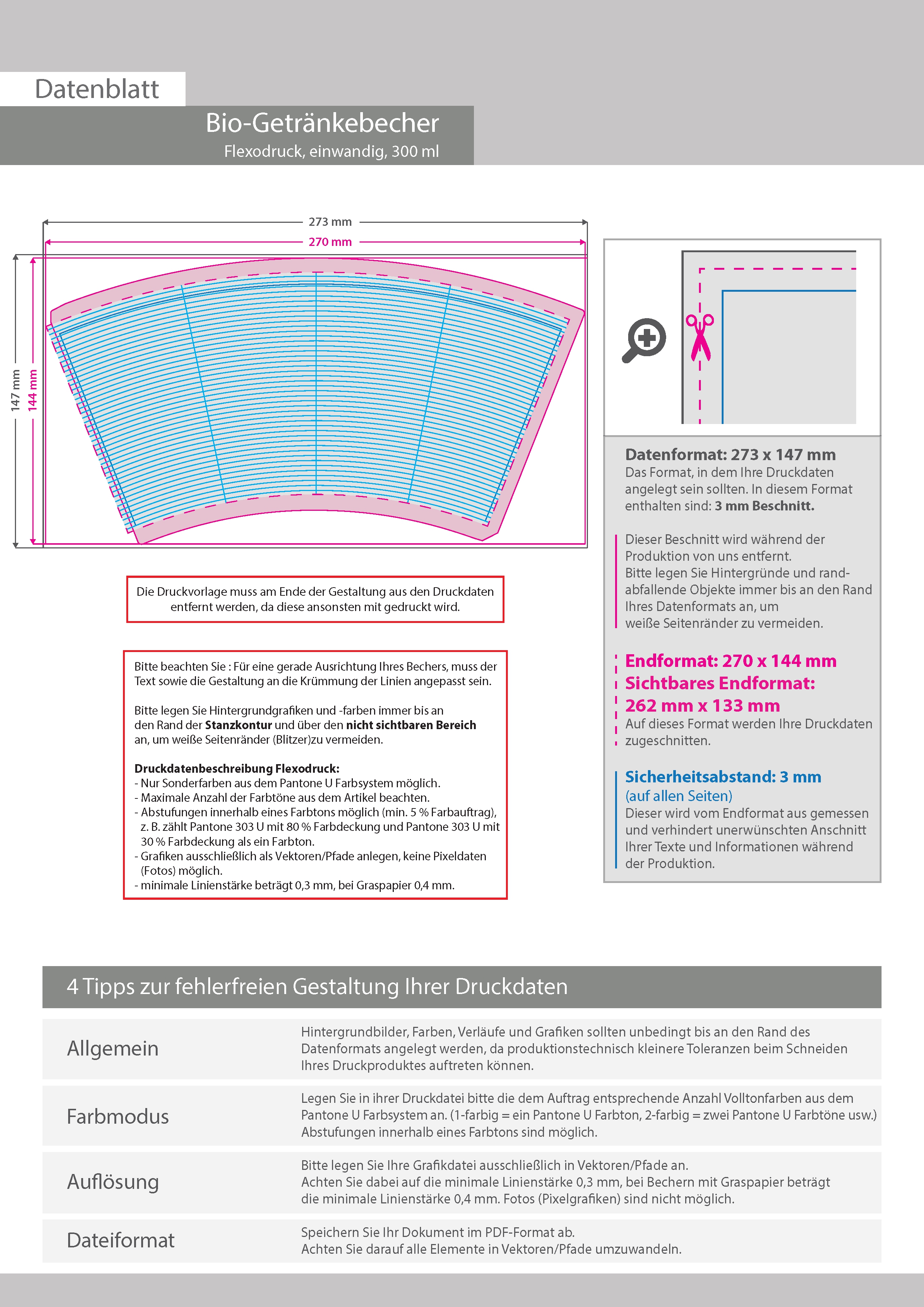 Bio Becher einwandig 300ml, 2/0-farbig (Pantone-Sonderfarbe)
