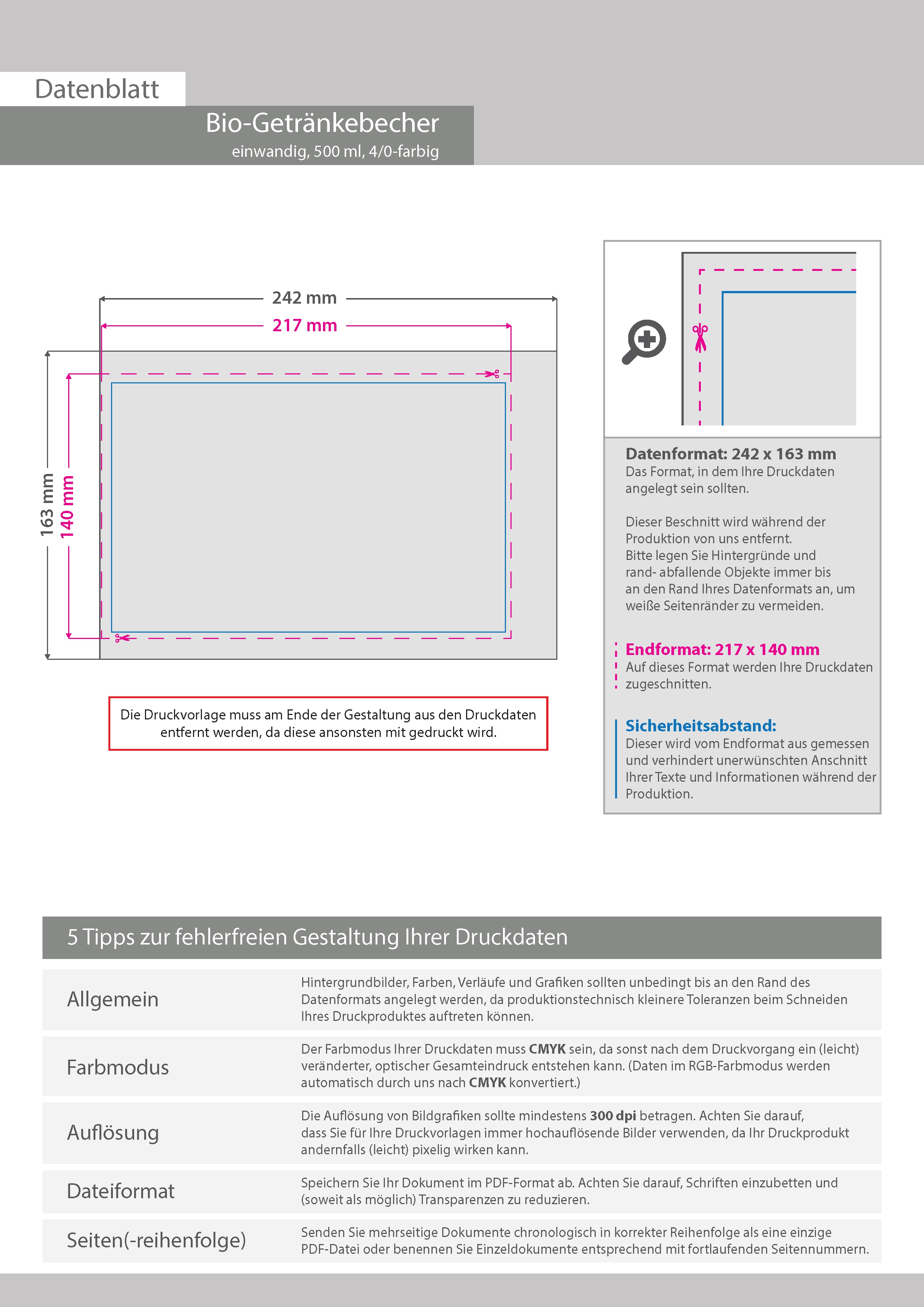 Bio Becher einwandig 500ml, 4/0-farbig (CMYK)